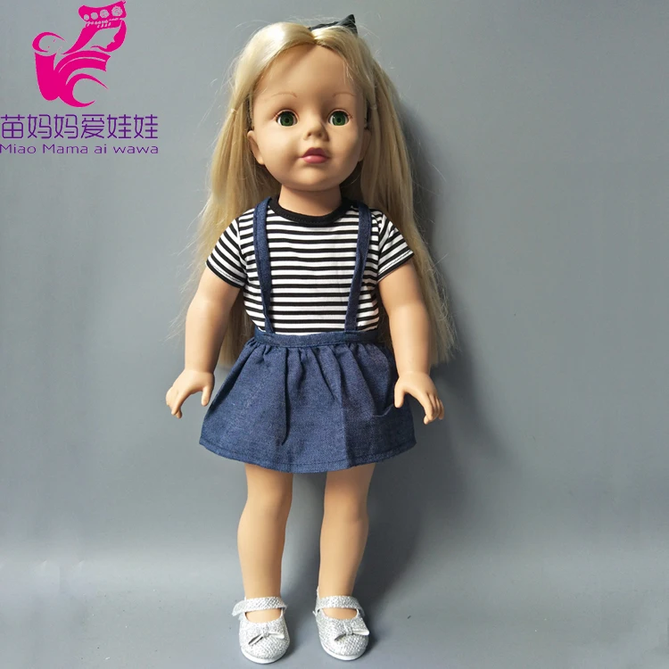 Special Offer for for 18 inch Baby dolls strip T shirt +Jeans skirt fit for 45cm girls doll dress sets