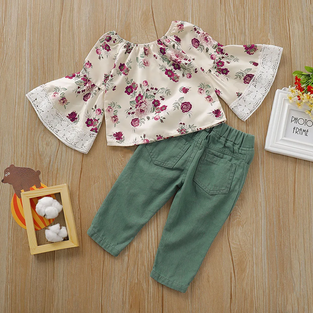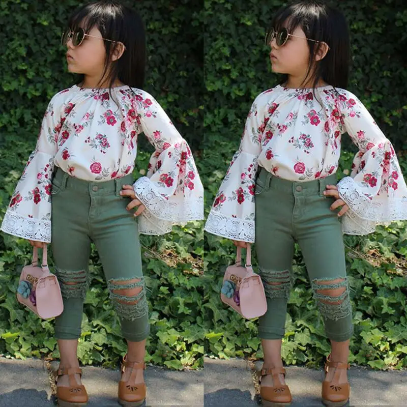 Special Price for Toddler Kids Baby Girl Off Shoulder Tops Denim Pants Jeans Outfit Set Clothes